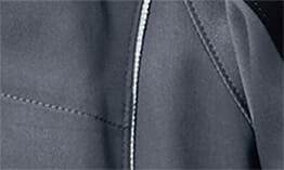 左肩、背中、そしてファスナーの引き手には反射材を使用。夜間の作業時、車両などの光を反射し、存在を知らせます。形やデザインにこだわりデザインアクセントにもなっています。