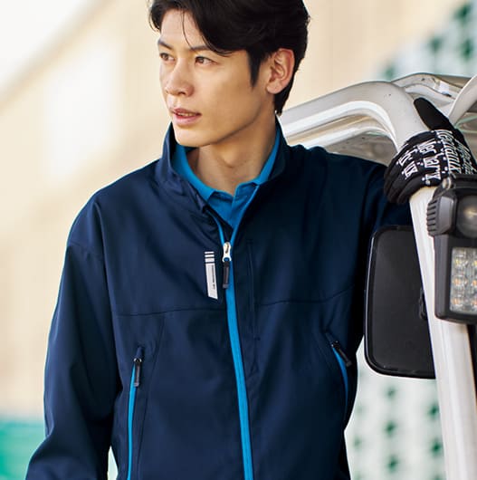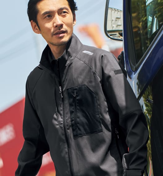 長時間の運転、荷物の上げ下ろしなどハードな動きにもしっかり対応するよう伸縮性に優れたストレッチ素材や作業中の油汚れや泥付きも落とせる特殊加工を施した素材を採用。また摩擦に強く繰り返される洗濯にも耐えるタフな素材を使用したブルゾンを展開しています。